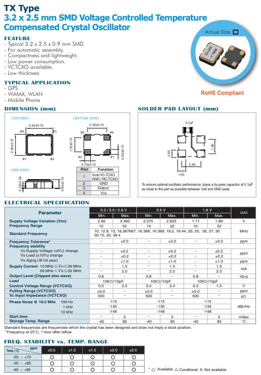| TXKTPCSANF-32.000000 | Taitien | TX | TCXO | 32MHz | 1.8V |