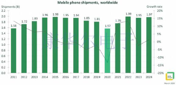 COVID-19病毒全球大流行今年智能手機銷量10年來最低