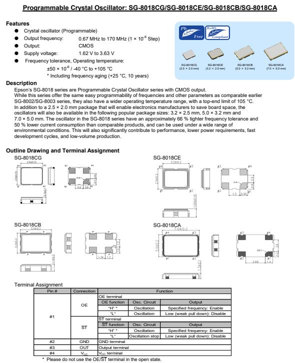 | X1G005601013900 | SG-8018CG | 7.372800 MHz | 2.50 x 2.00 x 0.80 mm | CMOS | 1.620 to 3.630 V | -40 to 105 °C | +/-50 ppm |