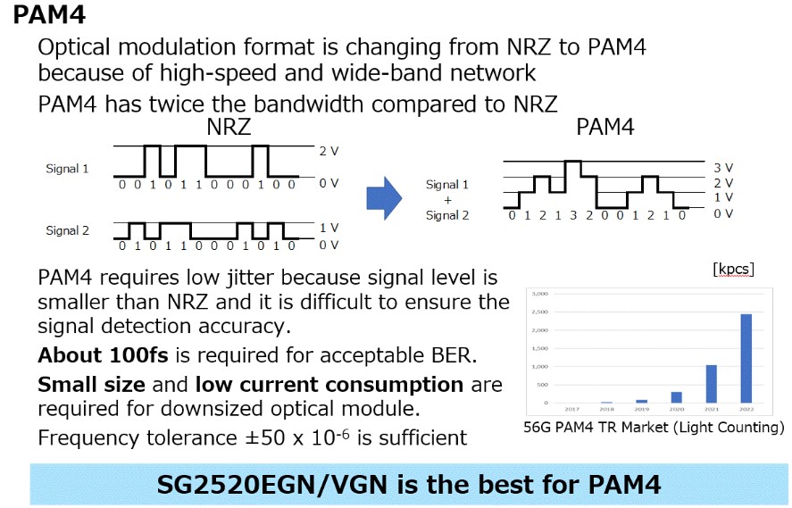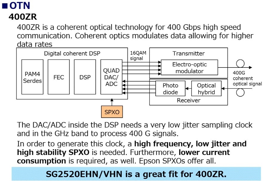 由于物聯(lián)網(wǎng)和ADAS等5G應(yīng)用的實(shí)施,隨著數(shù)據(jù)流量的增長(zhǎng),網(wǎng)絡(luò)基礎(chǔ)設(shè)施變得比以往任何時(shí)候都更加重要。IT廠商一直在快速建設(shè)數(shù)據(jù)中心,對(duì)安裝在數(shù)據(jù)中心內(nèi)部的光模塊有著巨大的需求。這種應(yīng)用要求晶體振蕩器具有“小”、“低抖動(dòng)”和“高穩(wěn)定性”,而我們的SG2520系列貼片石英晶振可以滿足所有這些要求。以下是我們產(chǎn)品的特點(diǎn),這些將有助于光模塊的性能。X1G0058810001專用于6G光學(xué)應(yīng)用的小型封裝高穩(wěn)定性振蕩器