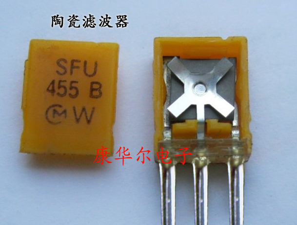 先為大介紹一下這個全身黃通通的叫什么名字,沒錯他就是陶瓷濾波器,應用于收音機,也可以稱之為,收音機濾波器,主要作用是過濾外來信號頻率的,大家看到沒有它的內部像風車一樣,那個是它的心臟支架.不過這款晶振市場上已經不常用了.