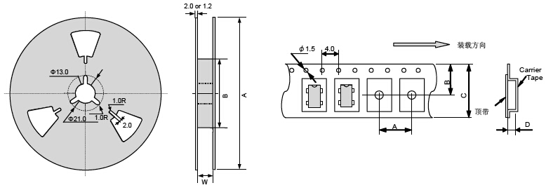 將SMD 產(chǎn)品包裝在紙箱里以便裝運(yùn),如下表所述;符合磁帶標(biāo)準(zhǔn)EIA-481 和 IEC-60286.