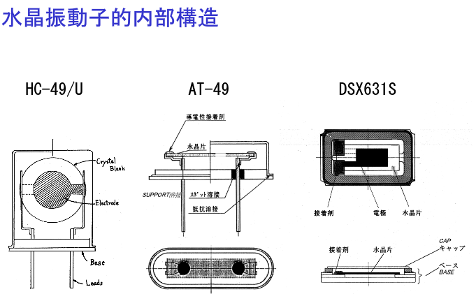 石英晶體諧振器的內部結構就是在一片較薄的石英晶片的兩端電鍍上兩個電極。在電極上加一個交互的電壓使之石英晶片產生振動,并設定在一個特定的頻率上。這個頻率與其石英晶片的厚度有關。可以通過正確的設計相關參數,來制作我們想要得到的頻率的石英晶體諧振器。