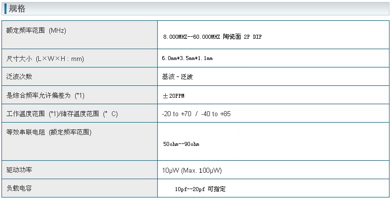 晶振規(guī)格