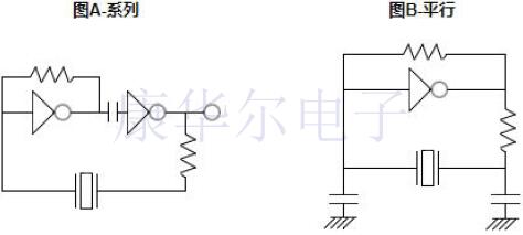 并聯諧振晶體適用于在石英晶體振蕩器反饋環路中包含電抗組件(電容器)的電路,這些電路取決于電抗元件和晶體,以實現在指定頻率下開始并保持振蕩的相移.串聯諧振晶體適用于在振蕩器反饋環路中不包含電抗組件的電路,請參見圖A的串聯,圖B的并聯諧振晶體: 內部電容(C1)(C2):