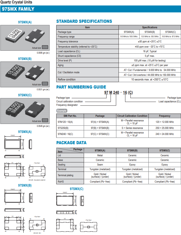 | SMI晶振 | 單位 | 97SMX(A)晶振 | 石英晶振基本條件 |