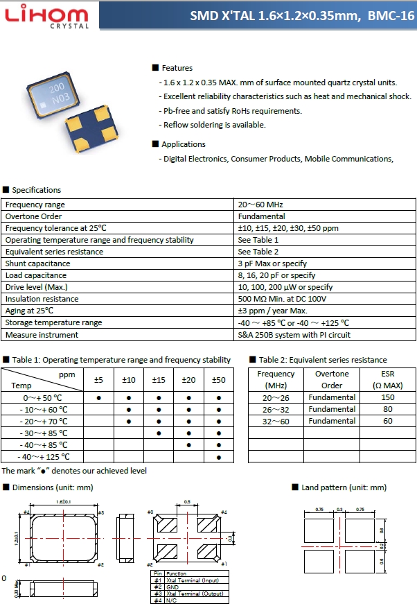 | Lihom晶振 | 單位 | BMC-16晶振 | 石英晶振基本條件 |