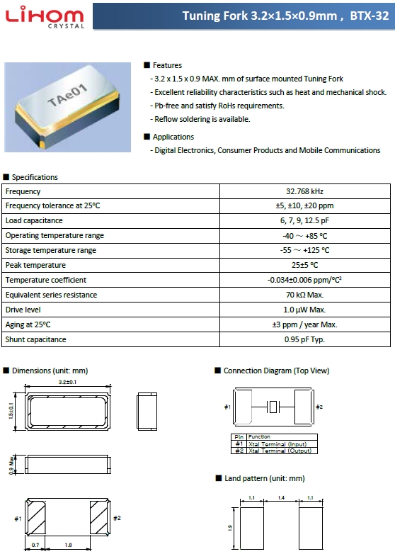 | Lihom晶振 | 單位 | BTX-32晶振 | 石英晶振基本條件 |
