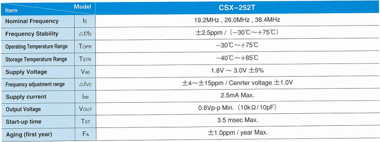 CITIZEN晶振代理商,CSX-252T有源晶振,2520mm壓控振蕩器,高密度SMD類型2.5*2.0*1.0mm,頻率范圍19.2MHZ~38.4MHZ,滿足無鉛焊接的高溫回流溫度曲線要求,帶有AFC(頻率控制)功能,Enable/Disable功能,產(chǎn)品本身可根據(jù)使用需要進行選擇.