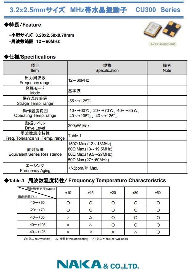 | NAKA晶振 | 單位 | CU300晶振 | 石英晶振基本條件 |