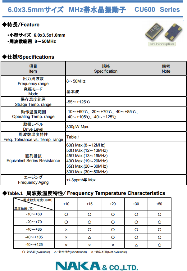 | NAKA晶振 | 單位 | CU600晶振 | 石英晶振基本條件 |