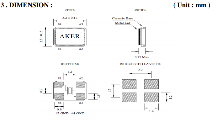 封裝 | 金屬面貼片 | 尺寸 | 3.2*2.5*0.75mm |