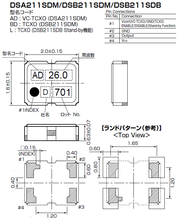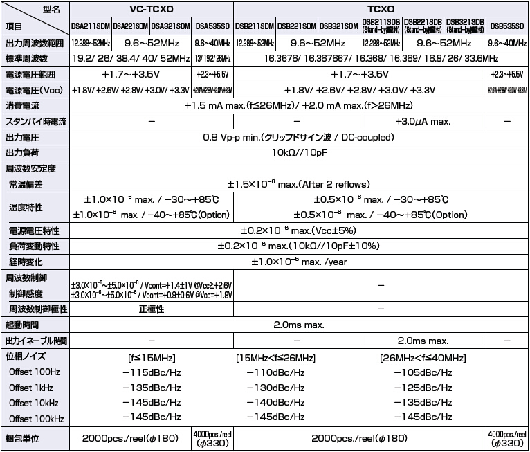 DSA211SDM(VC-TCXO)石英晶振,DSB211SDM(TCXO)有源晶振,“1XXC52000JBA”大真空株式會社,SMD封裝2.0*1.6*0.63mm,頻率范圍12.288MHz~52.0MHz,低電壓1.7V~3.5V,頻率溫度穩定值±1.5×10-6,VC-TCXO產品內部晶片焊接模式采用了,高精密點膠技術:晶片膠點的位置、大?。何恢脺蚀_度以及膠點大小一致性,通過圖像識別及高精密度數字定位系統的運用、使晶片的點膠的精度在±0.02mm之內.