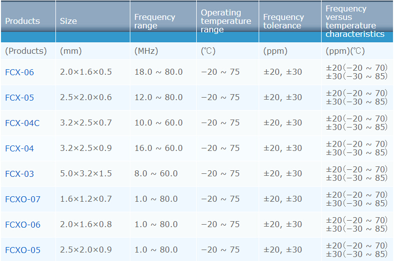 大河株式會(huì)社,FCX-04C貼片晶振,車載電子產(chǎn)品晶振,在高度緊湊的設(shè)計(jì)3.2mm×2.5mm×0.7mm最大,重量:18mg,可容納10至60MHz頻率,VCXO拉寬頻率范圍,適應(yīng)高精度的頻率和溫度特性,無鉛焊接可用,符合RoHS,隨著AEC-Q200依從性的可能性.無線通信模塊,各種通信,熱像儀,時(shí)鐘.