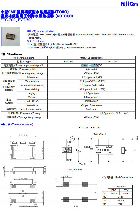 富士晶體,VC-TCXO晶振,FVT-70C振蕩子.小型貼片有源晶振,體積的變小也使產品帶來了更高的穩定性能,接縫密封富士石英晶體振蕩器,精度高,覆蓋頻率范圍寬的特點,貼片高速自動安裝和高溫回流焊設計,Optionable待機輸出三態輸出功能,電源電壓范圍:1.8V?5V,高穩定性,低抖動,低功耗.