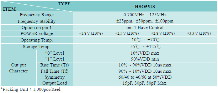 HSO531S振蕩器,HELE晶振原裝正品,24MHz有源晶振,尺寸大小5.0*3.2*1.3mm,工作電壓1.8~3.3V,頻率范圍0.700 to 125.0MHZ,工作溫度-10~+70℃耐高溫環(huán)境,三態(tài)函數(shù)應(yīng)用于視覺的產(chǎn)物.被廣泛應(yīng)用于,平板筆記本,GPS系統(tǒng),光纖通道,千兆以太網(wǎng),串行ATA,串行連接SCSI,PCI-Express的SDH / SONET發(fā)射基站等領(lǐng)域.符合RoHS/無鉛.