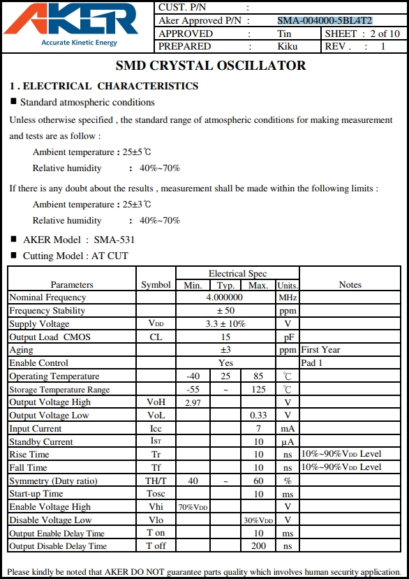 AKER晶體,SMA-004000-5BL4T2有源晶振,SMA-531振蕩器