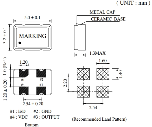 封裝 | 金屬面貼片 | 尺寸 | 5.0*3.2*1.3mm |