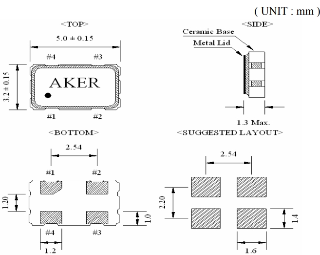封裝 | 金屬面貼片 | 尺寸 | 5.0*3.2*1.3mm |