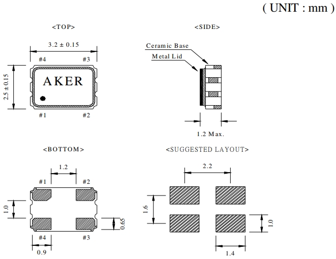 封裝 | 金屬面貼片 | 尺寸 | 3.2*2.5*1.2mm |