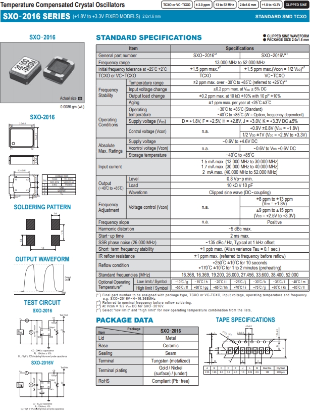 SMI晶振,TCXO晶振,SXO-2016石英晶振.小型,輕型,低消耗電流,表面貼片型產品.(可對應回流焊)無鉛產品.滿足無鉛焊盤的高溫回流溫度曲線要求,帶有AFC(頻率控制)功能,Enable/Disable功能,產品本身可根據使用需要進行選擇.