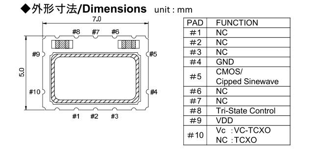 NAKA晶振,VC-TCXO晶振,TC700進口晶振.壓控溫補晶振具有適合于移動通信設備用途的高穩定的頻率溫度特性.為對應低電源電壓的產品.(可對應DC+1.8V±0.1V to+3.2V±0.1V )高度:高1.0 mm,體積:0.007 cm3,重量:0.024g,小型,輕型.低消耗電流,表面貼片型產品.(可對應回流焊)無鉛產品.滿足無鉛焊接的回流溫度曲線要求.
