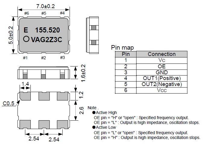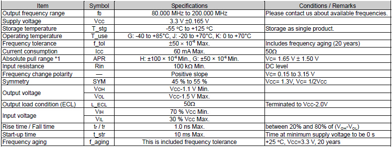 VG-4512CA石英晶體振蕩器,VCXO晶振,愛普生晶振,“VG-4512CA 155.5200M-GGCT0” 頻率范圍80MHz~200MHz,電源電壓3.3V,絕對頻率控制范圍50×10-6, 100×10-6,功能使能(OE)Active High or Low,外部尺寸規(guī)格7.0×5.0×1.6mm,輸出LV-PECL.