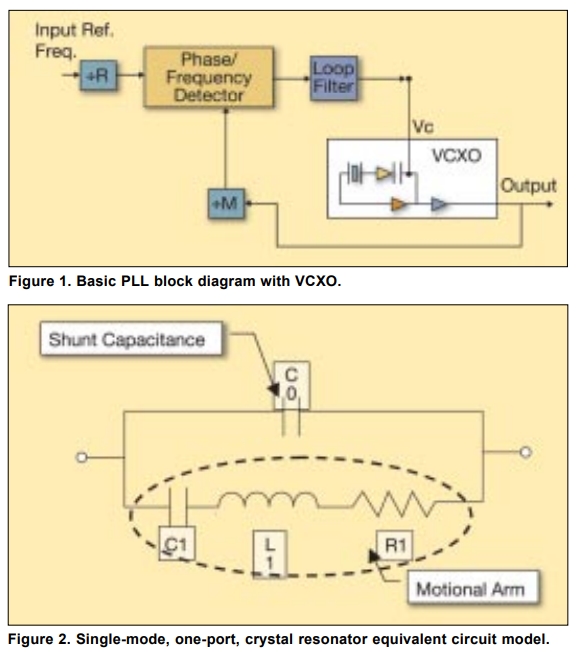 VCXO最常見的用途是PLL應(yīng)用,例如如圖1所示。石英的電學(xué)等效電路VCXO中使用的晶體如圖2所示。C1、L1和R1被稱為晶體的運動參數(shù),C0是分流電容。C0是真實的——它實際上可以用 一個簡單的電容計。運動臂參數(shù),打開另一方面,它們是等效的,不容易測量。怎么水晶的大部分頻率被拉或偏離意志取決于C0/C1的比率。 等式1是復(fù)雜的,我們對虛數(shù)感興趣部分,稱為晶體的電抗曲線,為如圖3所示。