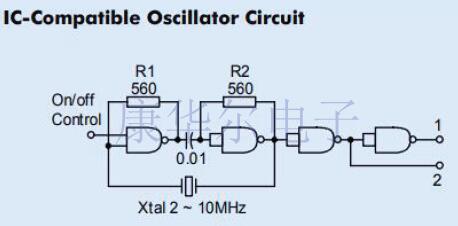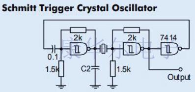 施密特觸發器提供良好的輸出平方,有時甚至不需要額外的輸出級.為防止雜散振蕩,請確保C2=1/1x104(頻率以Hz為單位).