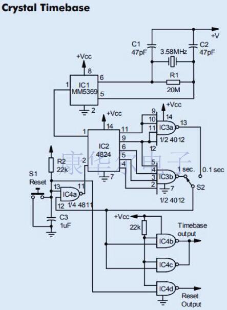 板載振蕩器和17級分頻器組成IC1.如圖所示,通過連接標準的3.58MHz電視色同步晶體,可在IC輸出的引腳1上產生60Hz方波的精確信號源.然后將這些脈沖饋入4024七級波紋計數器IC2.它的輸出直接連接到IC3中的不同門,IC3是雙四輸入NAND門.根據脈沖選擇開關S2占據哪個位置,這些門之一將提供選定寬度的輸出/復位脈沖. 使用不同的電路設計制造出來的振蕩器性能,功能,應用,封裝尺寸都不一樣,現在也有越來越多的新型電路出現,康華爾電子后續會再為大家總結一些相關的信息.還想了解哪方面的晶振知識,可以到http://m.mingdakt.cn/官網上留言,我們竭誠為廣大新老客戶服務.