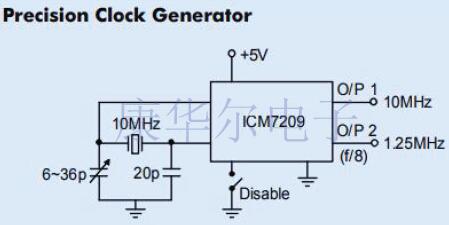 該電路的頻率范圍為0.5MHz至2.0MHz.可以使用微調電容器C2將頻率調整為精確值.第二或非門用作輸出緩沖器.