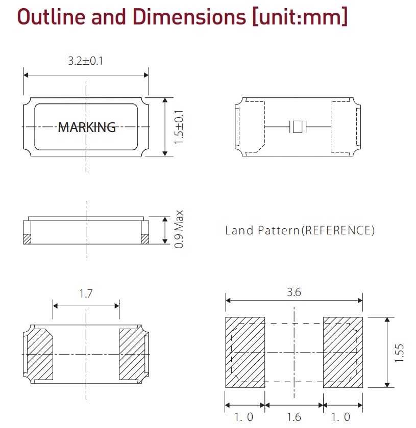 耐高溫6G晶振,XTL721-S999-301,Siward車載電子晶振,32.768KHz晶振,兩腳貼片晶振,尺寸圖